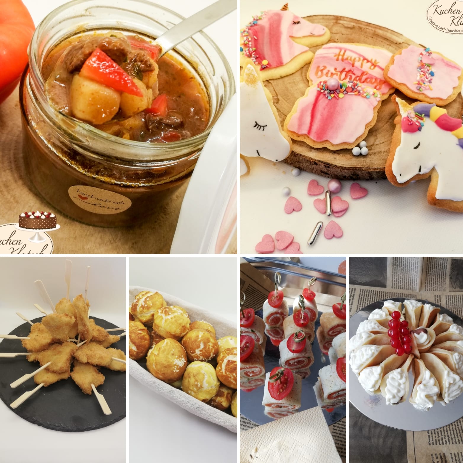 Egal ob herzhafte Köstlichkeiten wie Wraps, Partybrezeln, warme Gerichte, Lunchboxen, Fingerfoodbuffet oder auch süße Leckereien wir Torten, Cupcakes und weitere süße Gebäcke können bei mir bestellt werden.