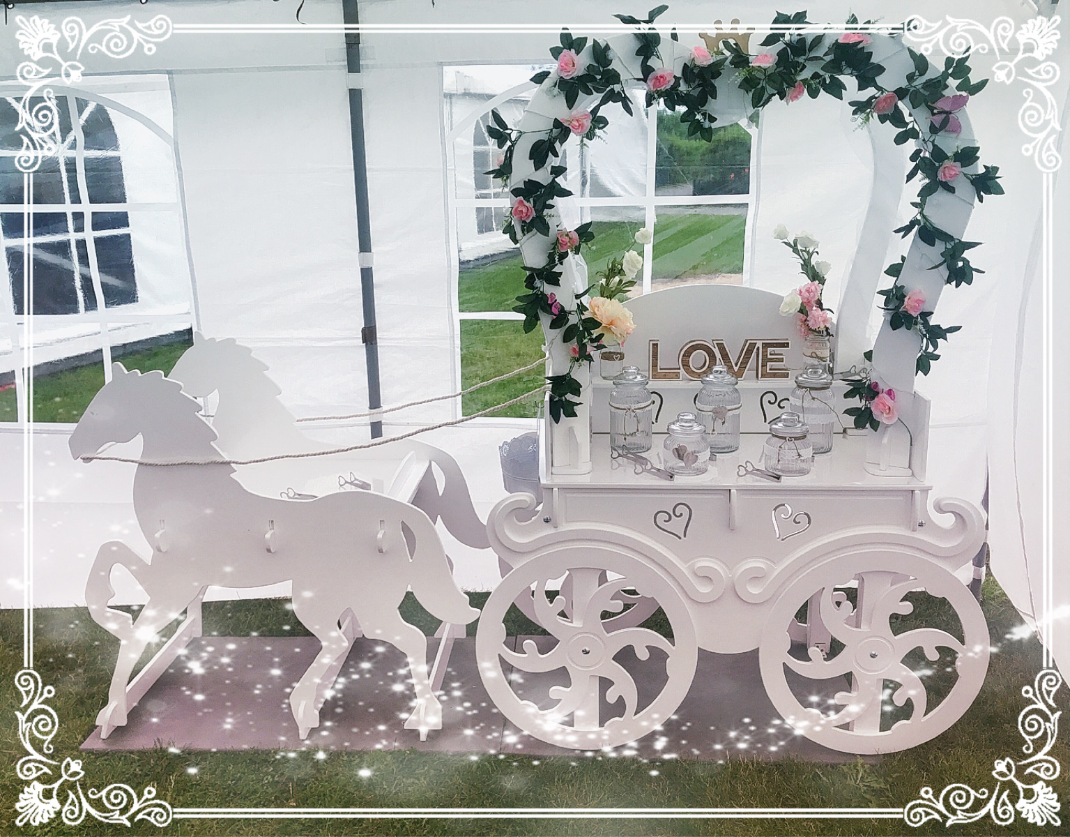 Egal ob am Standesamt, in der Kirche, im Schloss, im Garten oder einer anderen wunderschönen Location, unsere ganz besondere Candybar als Kutsche kommt überall gut an!!!