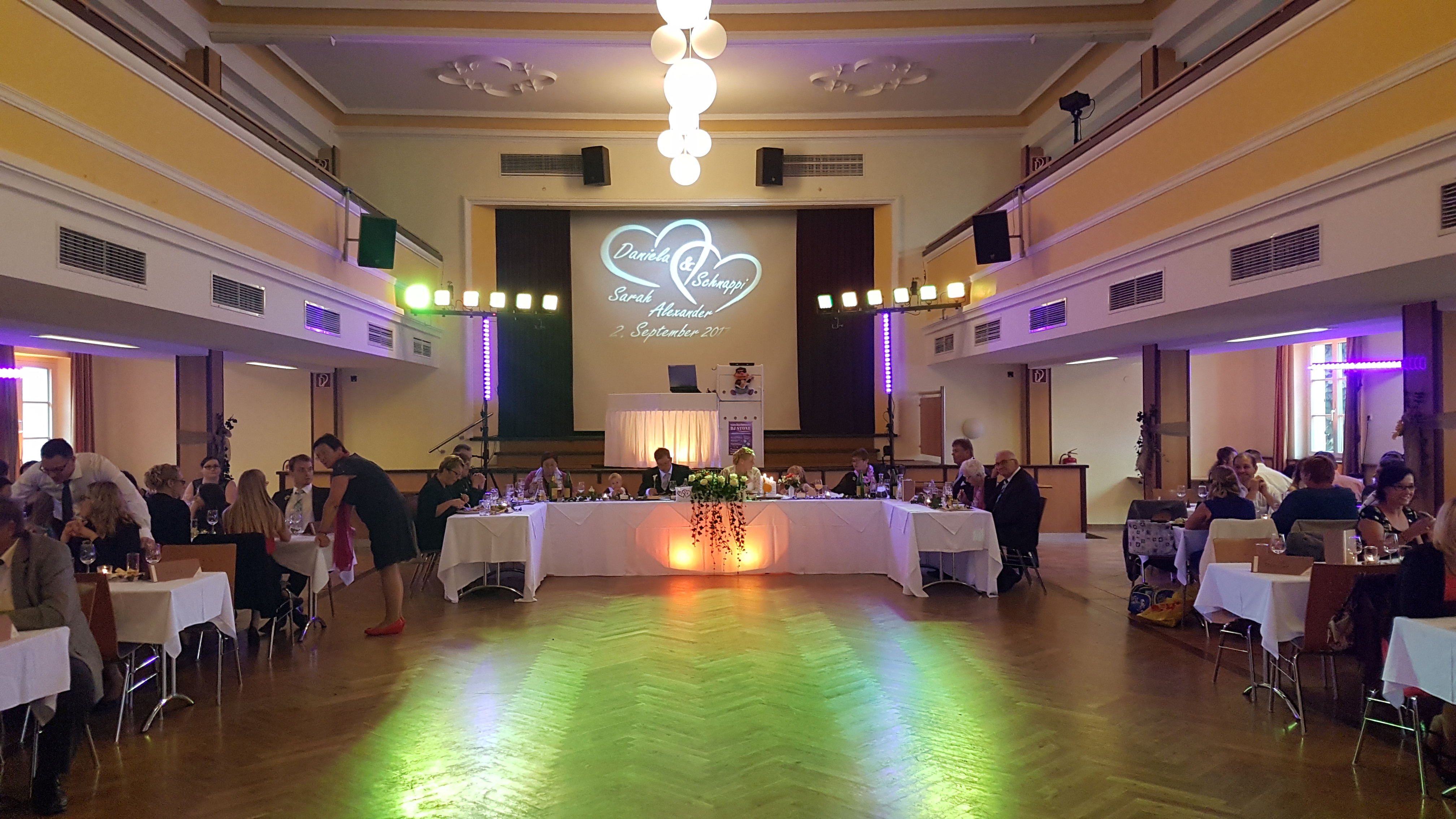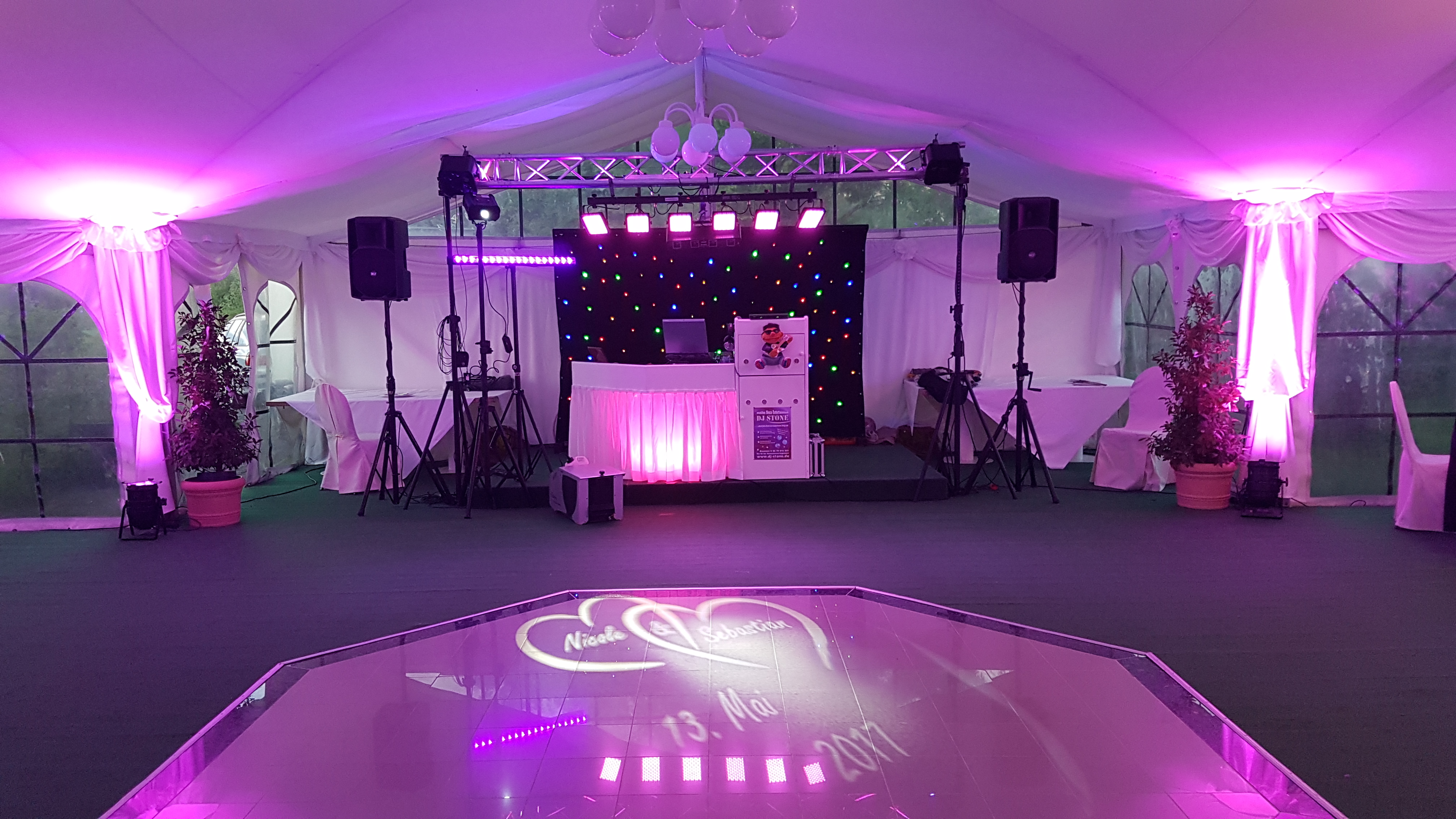 Kurz gesagt bekommen Sie: profesionellen Dj, Musikrepertoire von dne 60ern bis Aktuell, Umfassende und kompetente Beratung, professionelle Techtig, Puplikums orientierte Musikzusammenstellung ,Musik in allen Tanzrichtungen , profesionelle Moderation, Spezial Effekte personalisierte Gobos, Flogos Schaumotive die wir in den Himmel steigen lassen,auf Wunsch führen wir auch das Brautstehlen mit anschließender Weinstube durch,Saal- Beleuchtung in verschiedenen Farben,